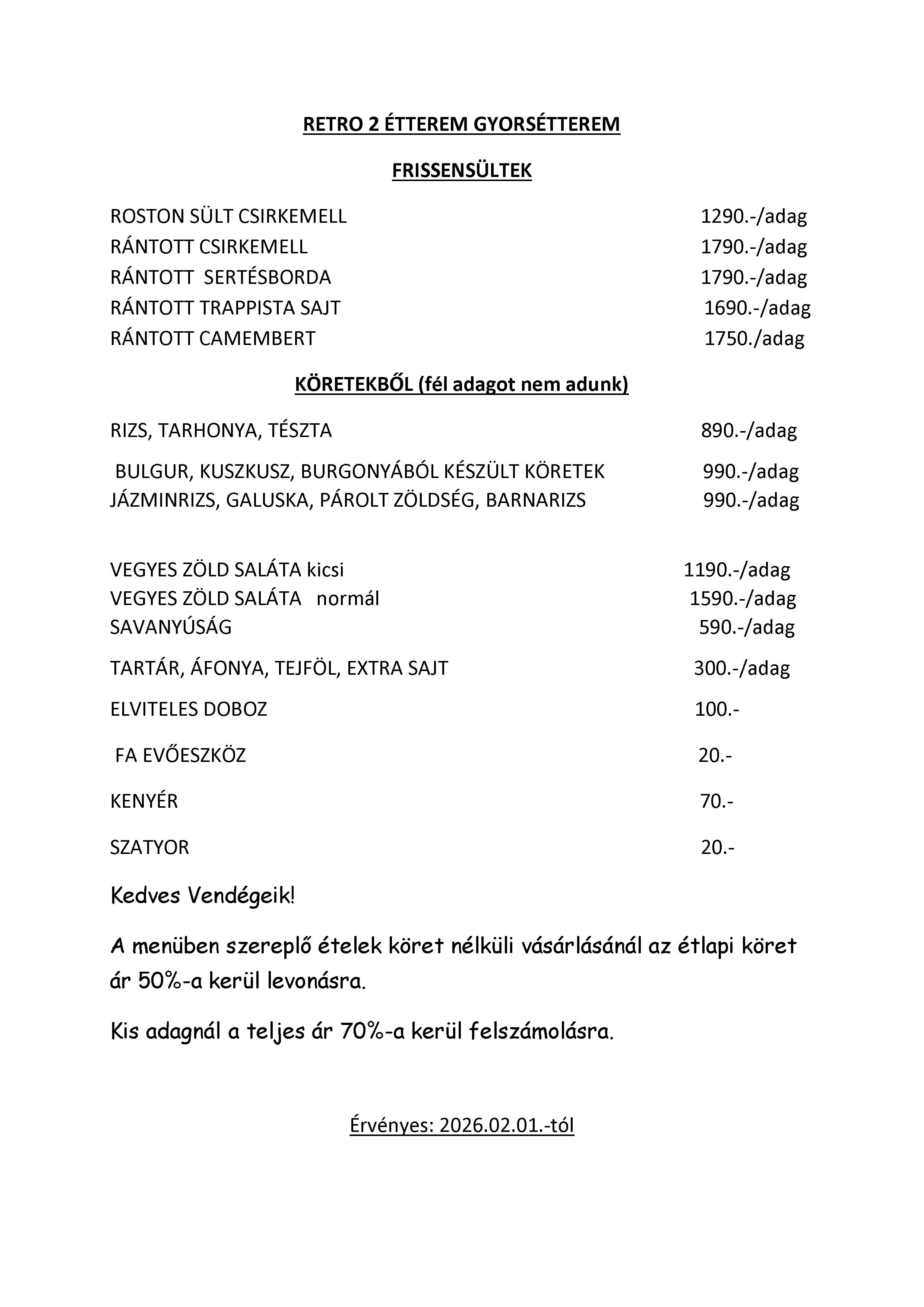 Retro 2. ÉTLAP ÁRAK